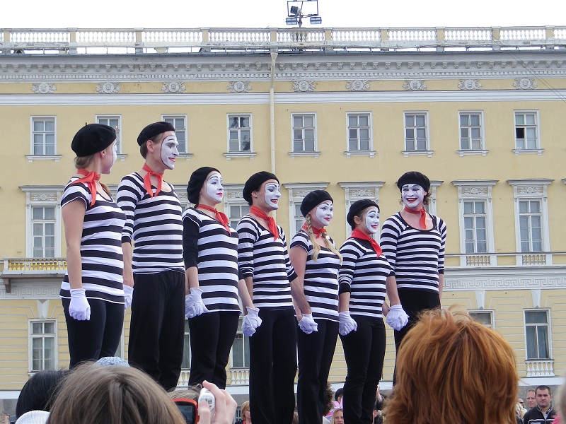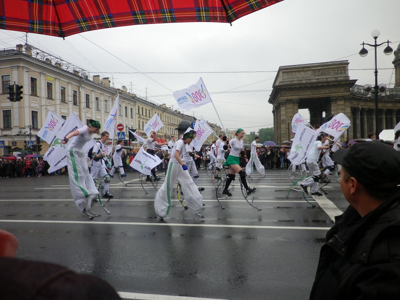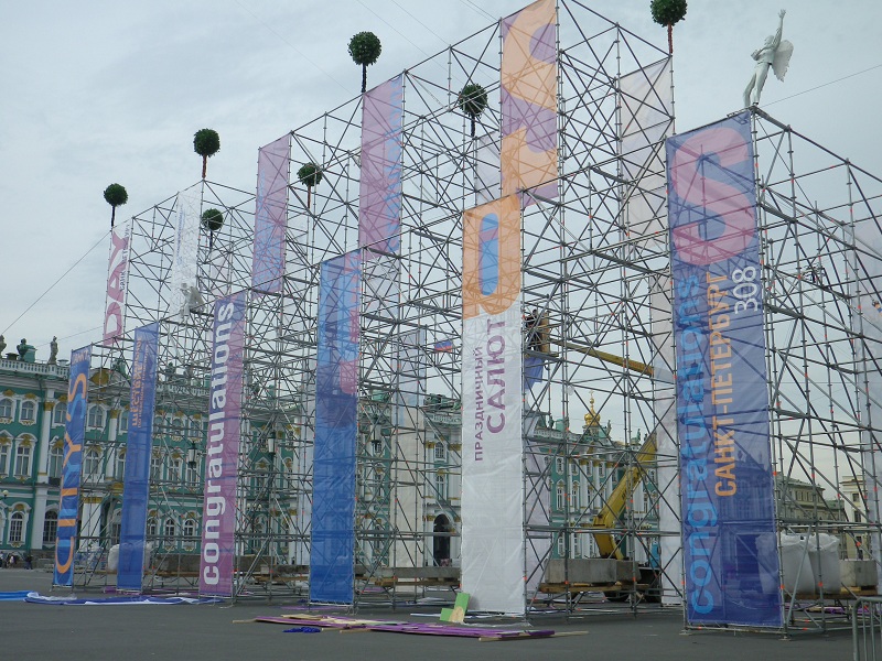 MCがサンクトペテルブルクの歴史を語り「サンクトペテルブルク!!」っと最後に叫ぶと、集まった人々が旗を振り「ウラー!!」ヾ(^▽^*)ノ